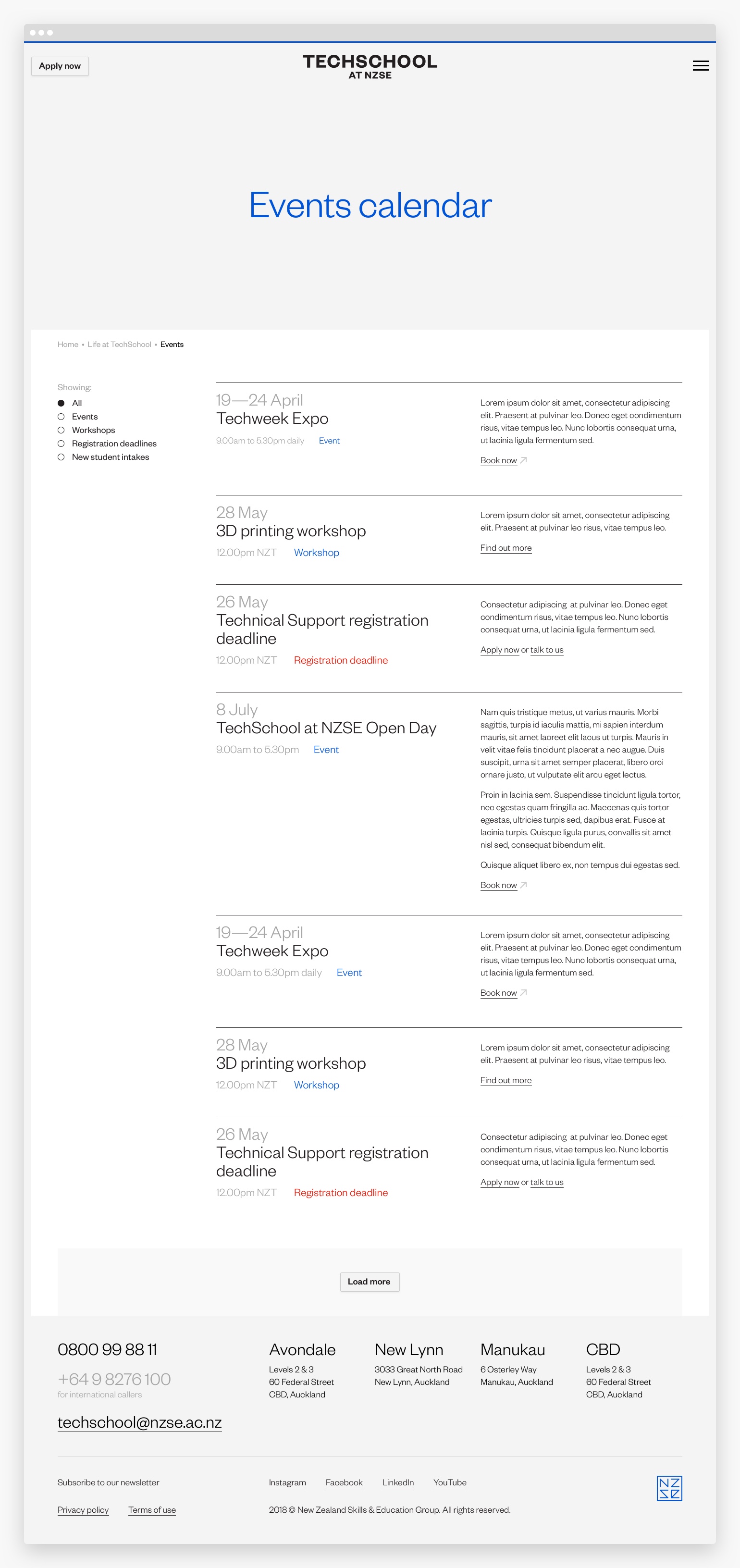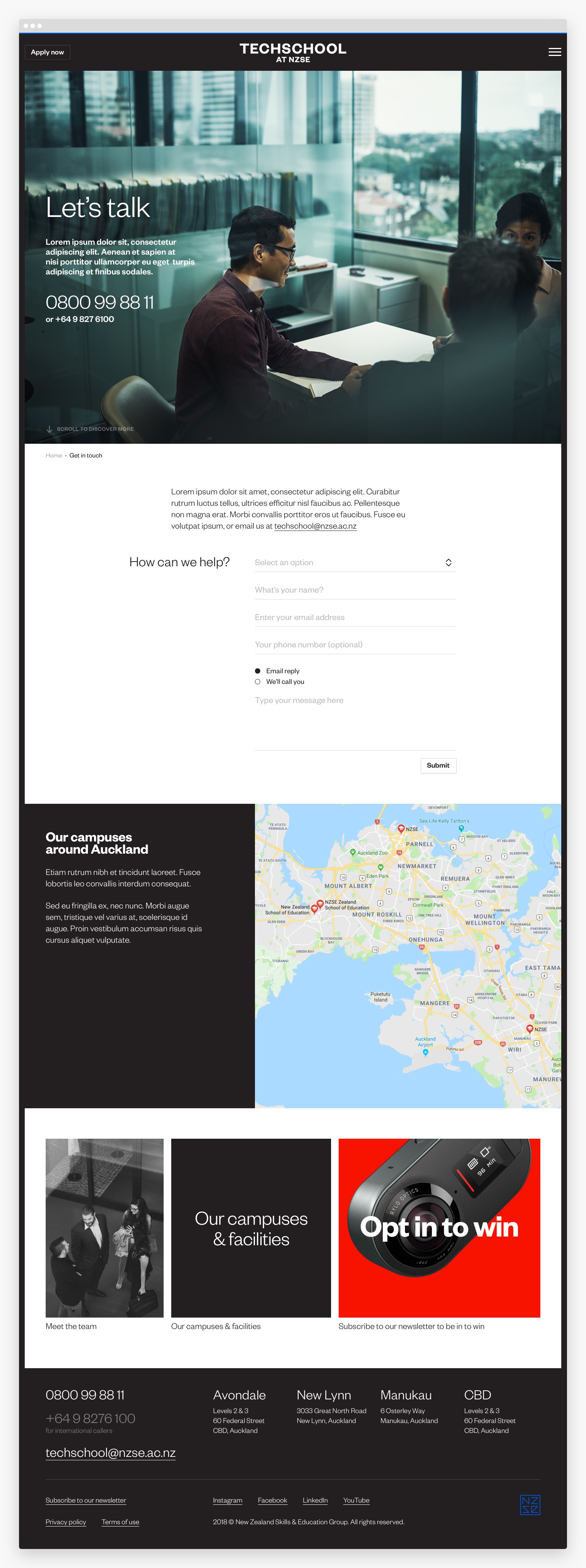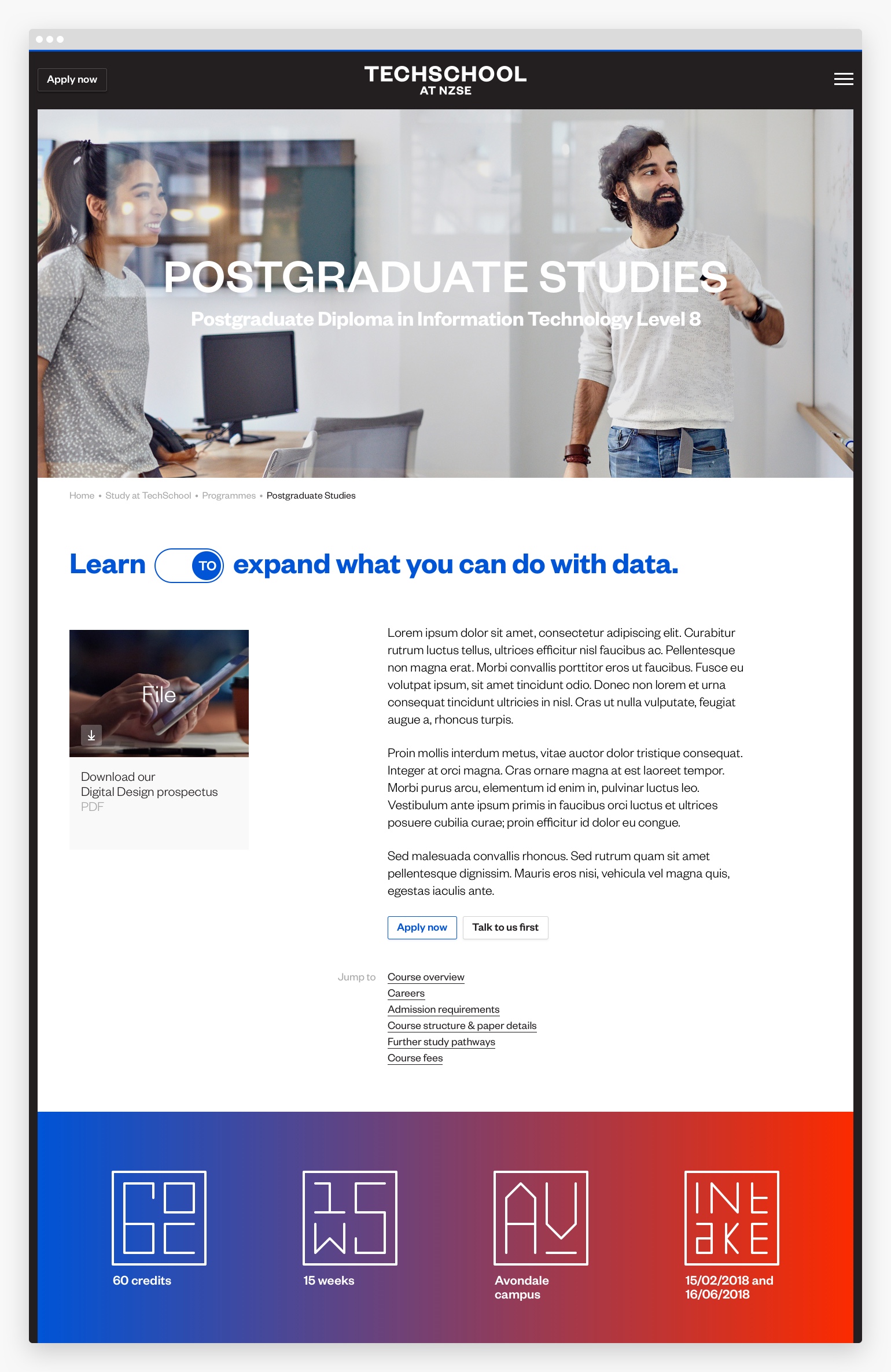 In 2018 I helped NZSE, the New Zealand School of Education, to consolidate their technology–focused programmes under a new umbrella: TechSchool at NZSE. As well as a new logotype and brand, I helped with establishing a new tone of voice, a redesigned website, and a launch campaign focused on ‘flipping the switch.’