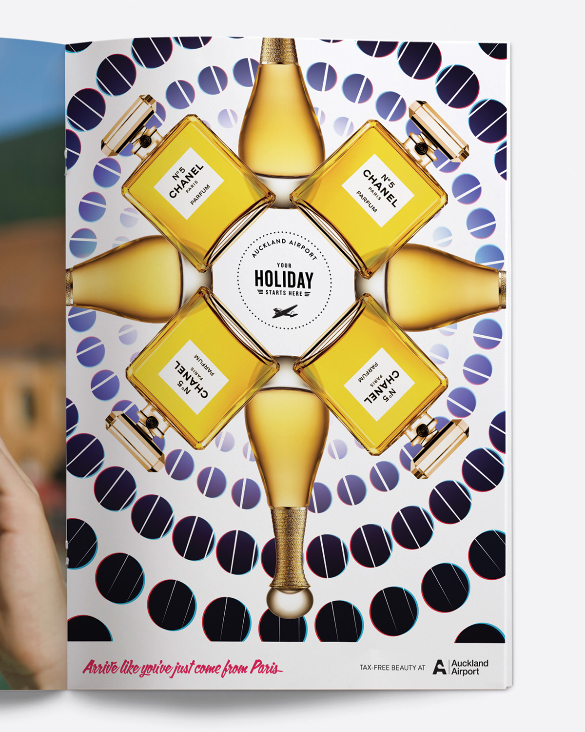 Below is a selection of recent retail collateral pieces and concept artwork for Auckland Airport, based around the brand proposition Your holiday starts here.